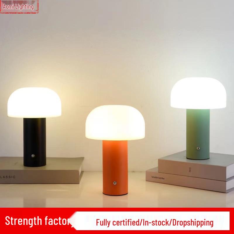 Grzybkowa lampka dotykowa w stylu nordyckim z ładowaniem USB i trójkolorowym ściemnianiem do atmosfery sypialni