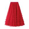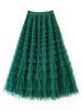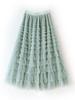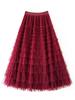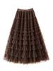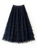Damska spódnica midi z wysokim stanem z warstwowego tiulu – Jesienno-zimowa plisowana puszysta spódnica z siateczki