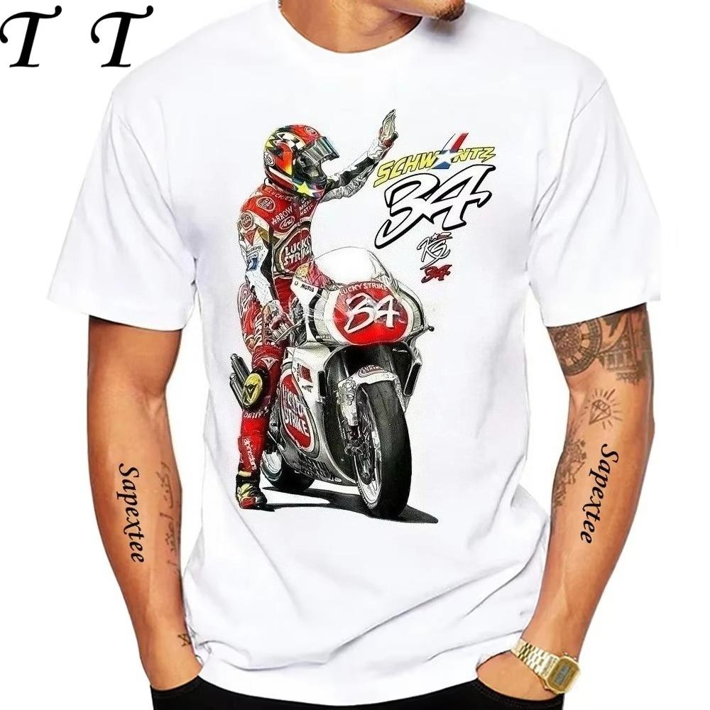 Legenda Kevin Schwantz 34 1993 GP 500cc Koszulka Męska Krótki Rękaw Hip Hop Chłopak Sportowa Casual Białe Topy Mężczyzna Koszulki Motocyklowe