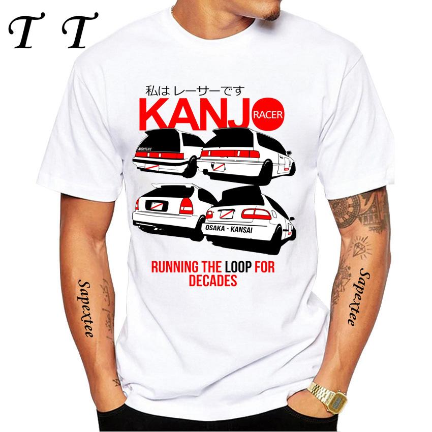 Kanjo Racer Civic Klasyczny T-Shirt Nowy Lato Męski Krótki Rękaw Retro Drift King Samochód T-Shirty Chłopięce Casualowe Białe Koszulki
