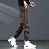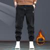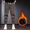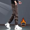 Męskie spodnie dresowe JieLeNuo z sztruksu patchworkowego, podszyte polarem