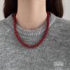 S925 Sterling Silver Encore Red Simulated Pearl Necklace for Women - Festive Autumn/Winter Sweater Chain