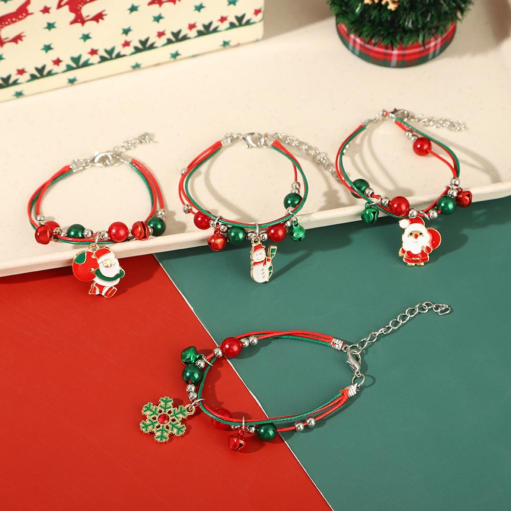 Hand-Woven Christmas Reindeer & Santa Claus Adjustable Bracelet with Snowflake & Bell Charms