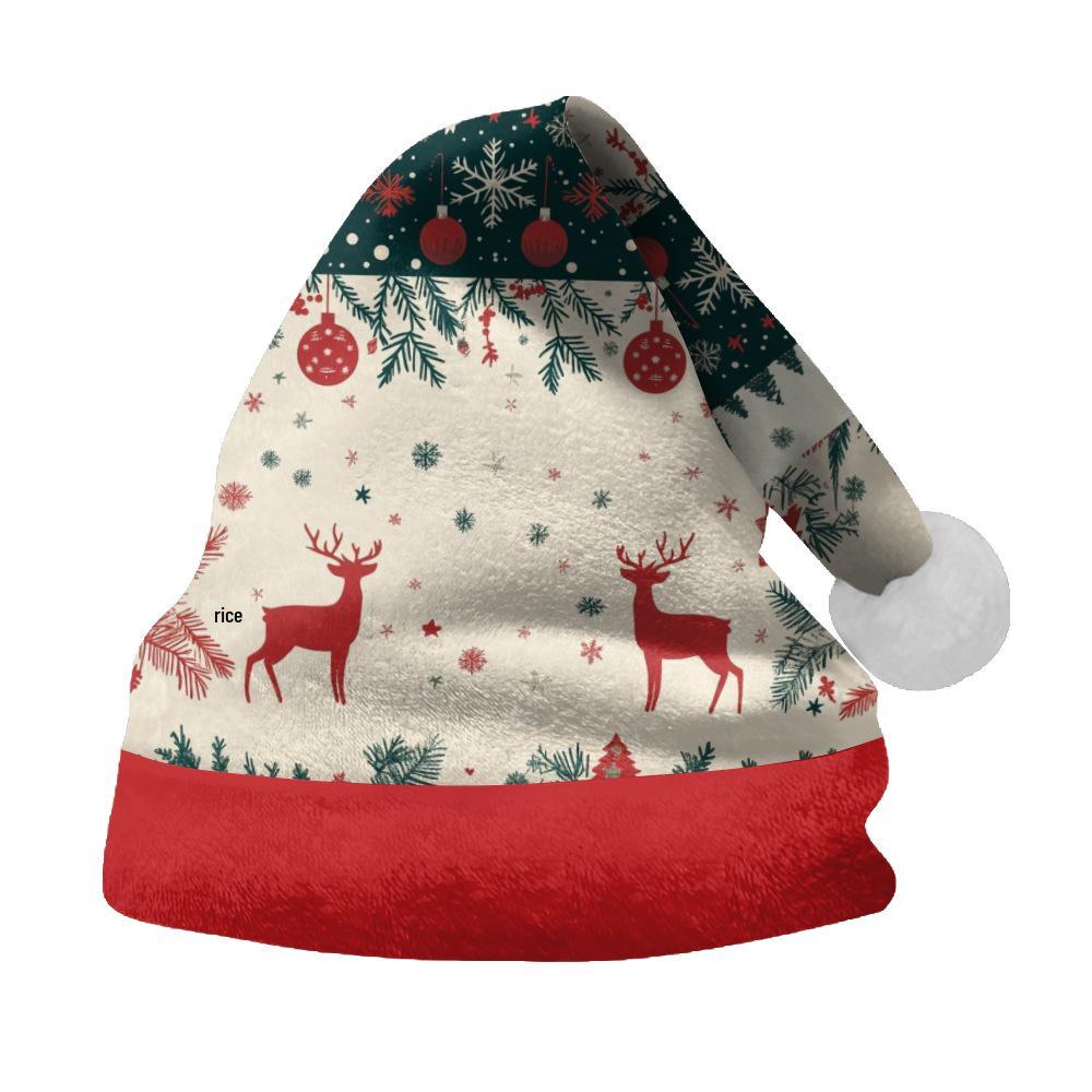 2024 Pluszowa Czapka Świąteczna z Nadrukiem Łosia dla Dorosłych i Dzieci - Podszyta Polarem, Dwustronna, z Dużym Rondem
