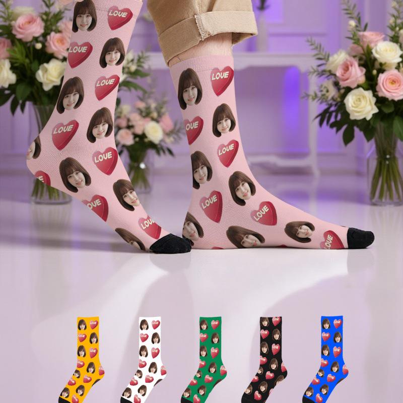 Skarpetki z nadrukiem 3D twarzy na zamówienie - Prezent świąteczny DIY, Poliester, Casualowe i wszechstronne