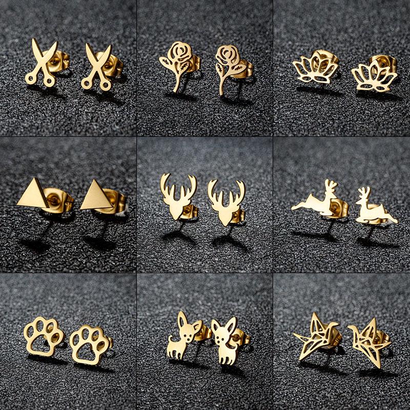 Niszowe Kolczyki Sztyfty ze Stali Nierdzewnej dla Kobiet – Design Żurawia Origami i Renifera, Kolekcja Mody 2025