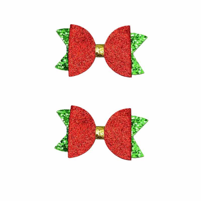 European and American Style Double-Layer Glitter Christmas Bow Hair Clip in Red and Green