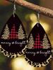 Retro Wielokolorowa Krata i Skóra Leopardowa Kolczyki Choinkowe