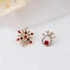 Czerwone Cyrkoniowe Perłowe Kolczyki Śnieżynki - Zimowe Retro Lekki Luksus Sztyfty