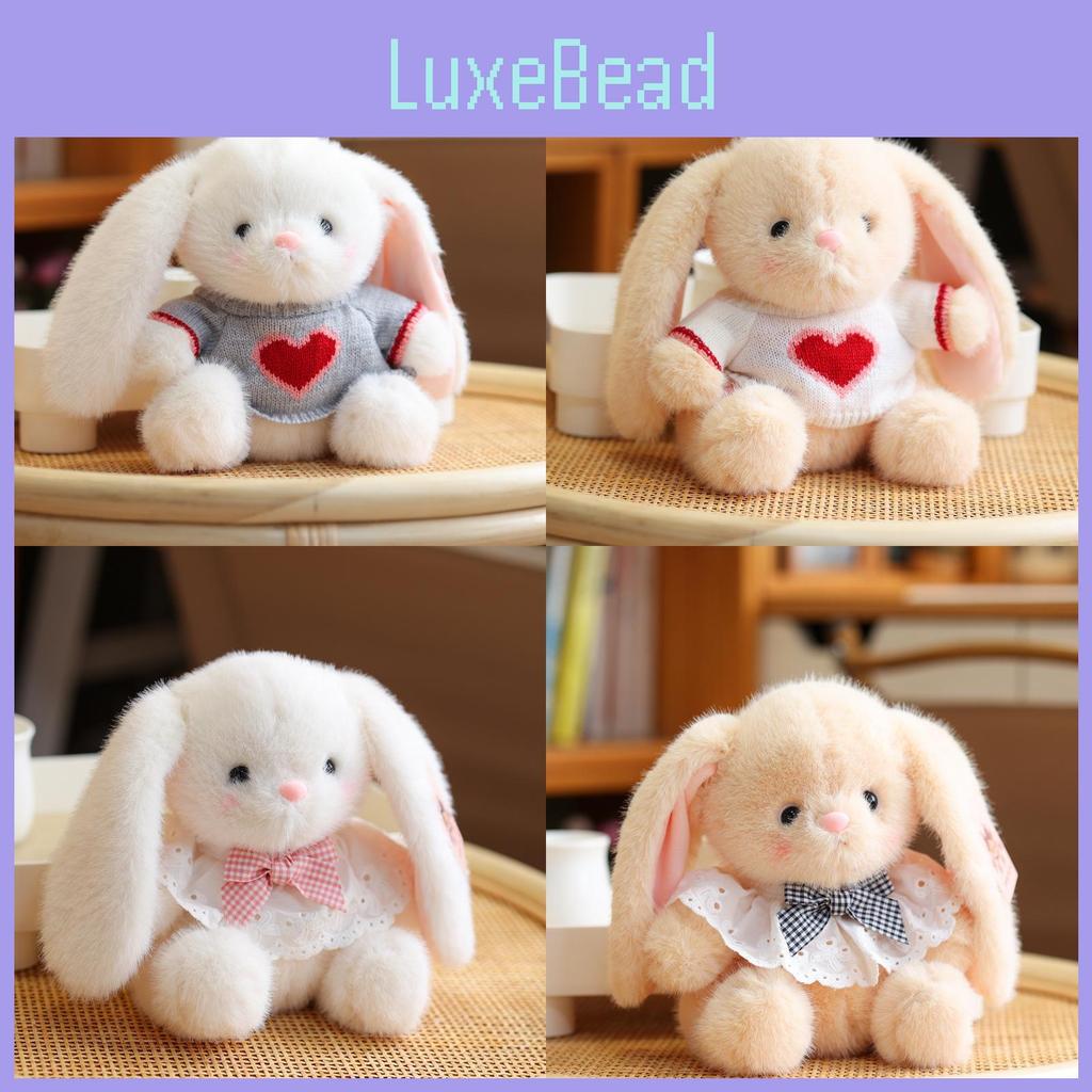 Introducing our adorable Cute Eared Bunny Plush Toy, a delightful companion that brings an extra touch of charm and comfort to anyone's life. The plush bunny is crafted from high-quality PP cotton, ensuring it is soft to the touch and perfect for cuddling. Each bunny is meticulously designed with a variety of charming outfits, including a cozy sweater with heart patterns, a stylish bowtie, and an elegant lace dress, available in both white and beige shades. These enchanting designs make the bunny not just a toy, but a collectible piece that can brighten up any space.