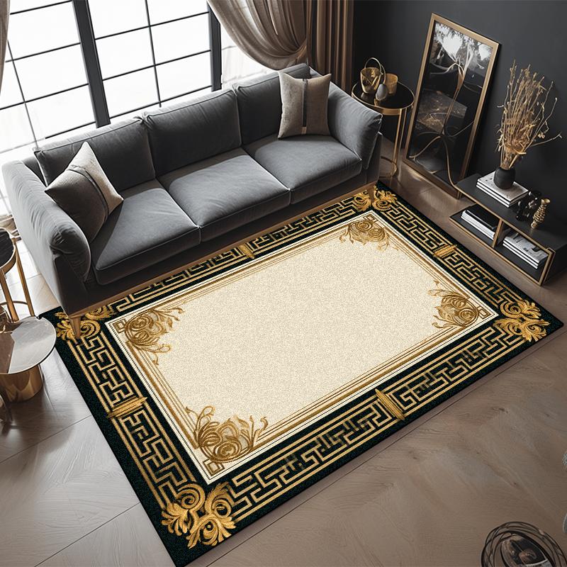 Nowoczesny Dywan z Złotym Obramowaniem Luksusowe Światło Dekoracja Sypialni Salon Sofa Stolik do Herbaty Dywaniki Boczne Zmywalna Mata Podłogowa na Wejście do Kuchni