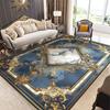 Luksusowy Europejski Dywan Dekoracyjny do Salonu Niebieski Inkrustowany Złotem Duży Rozmiar Dywan do Salonu Antypoślizgowy Zmywalny Mata Dekoracyjna do Sypialni