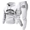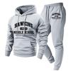 Męska codzienna bluza z kapturem z długim rękawem, z nadrukiem peryferyjnym z filmu i telewizji w jednolitym kolorze, męski sportowy zestaw dwuczęściowy: bluza i spodnie dresowe