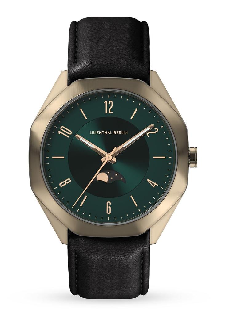 Lilianthal Berlin Faza Księżyca Wyprodukowany w Czerni Zegarek na Rękę, Niemcy, OM1-003-CB004BB, Męski,