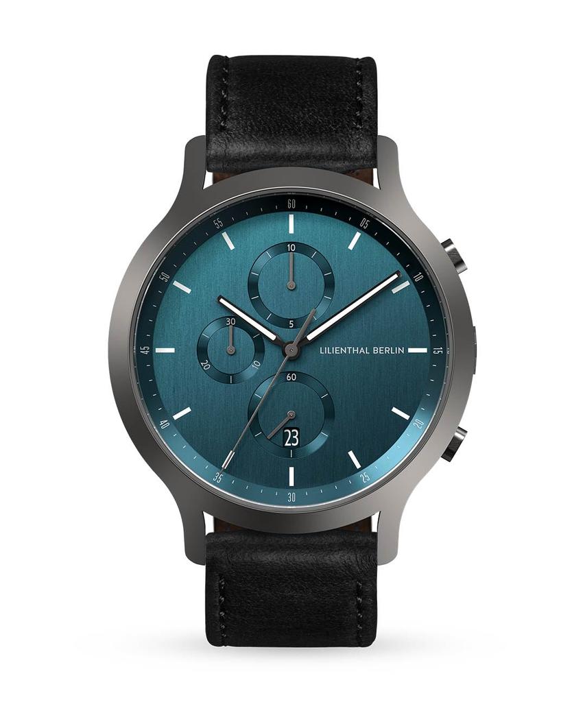 Lilianthal Berlin Chronograph Watch with Date Made in Black Men's Display, Germany, C01-112-B004F,