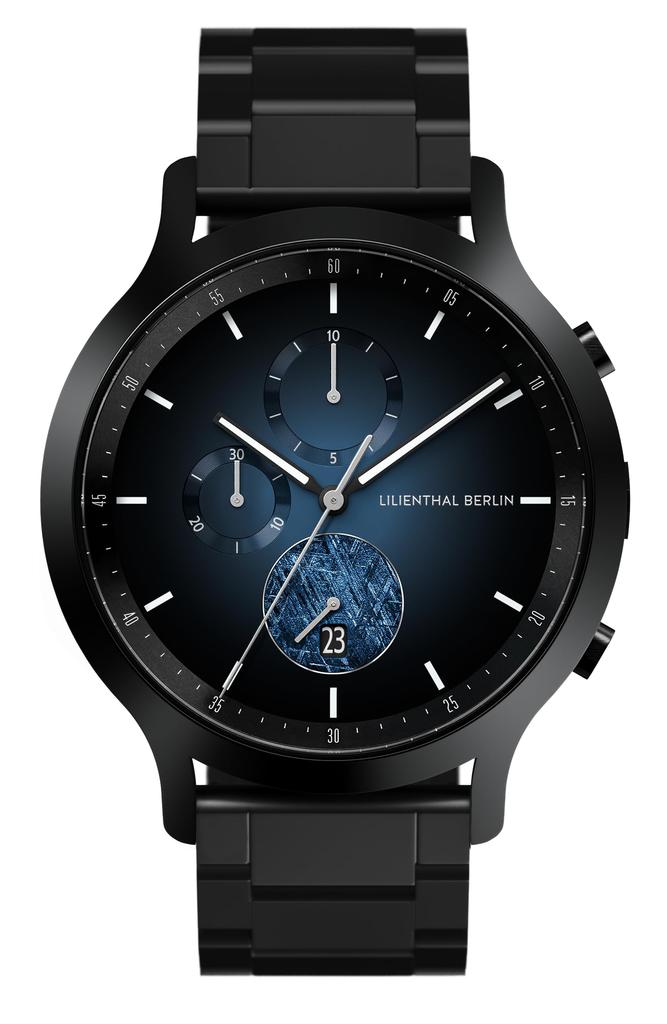 Lilianthal Berlin Chronograph Made in Black Men's Watch, Date, Meteorite, Germany, C01-024-B040C,
