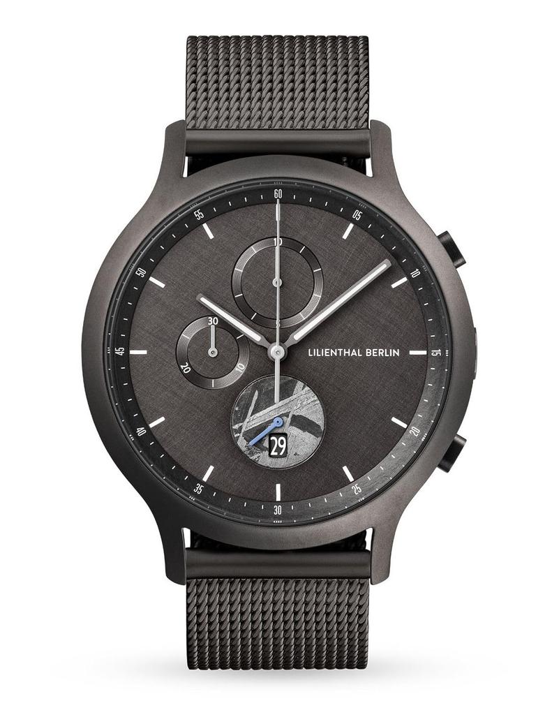 Lilianthal Berlin Chronograf Wykonany w Czerni Zegarek Męski, Data, Meteoryt, Niemcy, C01-026-B023F,