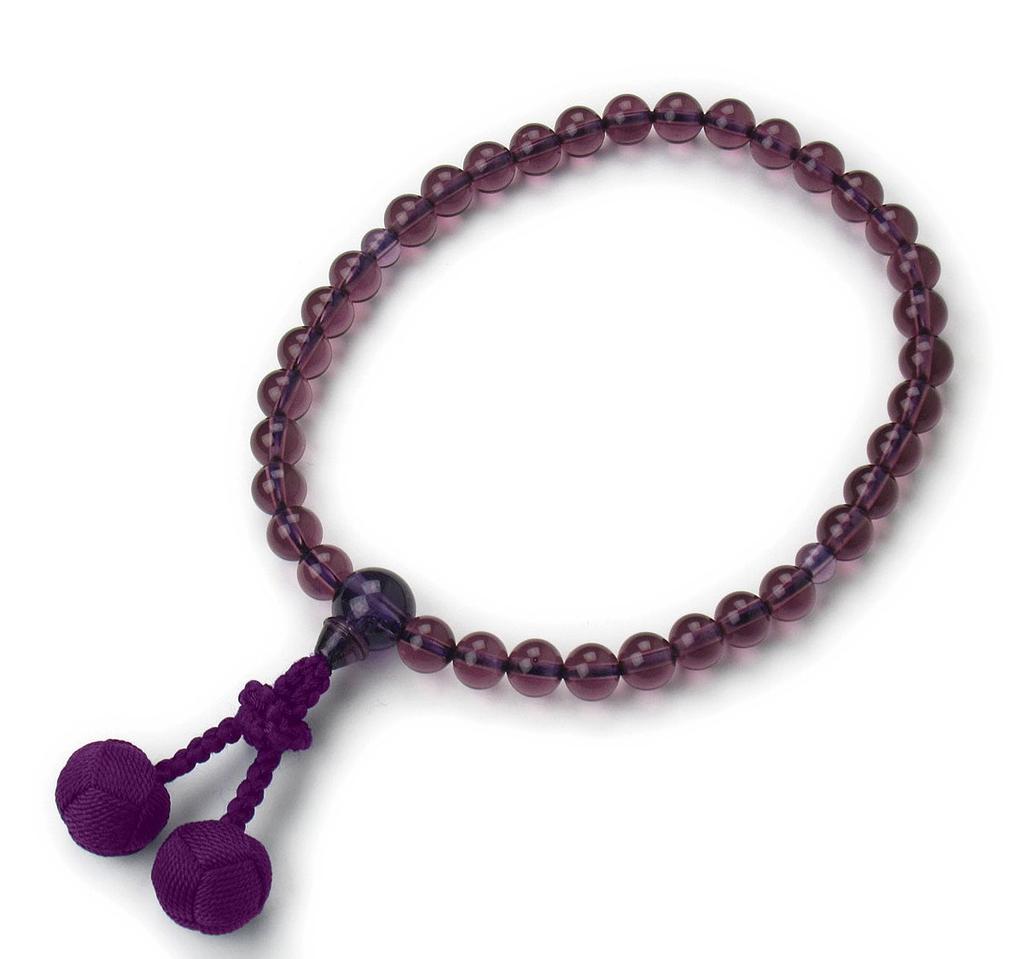 Nenjudo Made in Japan Women's Amethyst (Crystal) Prayer Beads with Durable, Crinkle-Resistant Tassels [Includes Prayer Bead Bag] Suitable for all