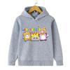 Bluza z kapturem z nadrukiem Lanky Box dla chłopca, zabawny kreskówkowy streetwear, nadruk Stone Cats, ubrania dla dzieci, bluza z długim rękawem dla dziewczynki, pulower typu box