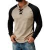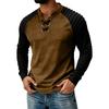 Męska koszulka z długim rękawem z zamszowymi wstawkami patchworkowymi i ściągaczem przy szyi, sportowa koszulka z długim rękawem plus size
