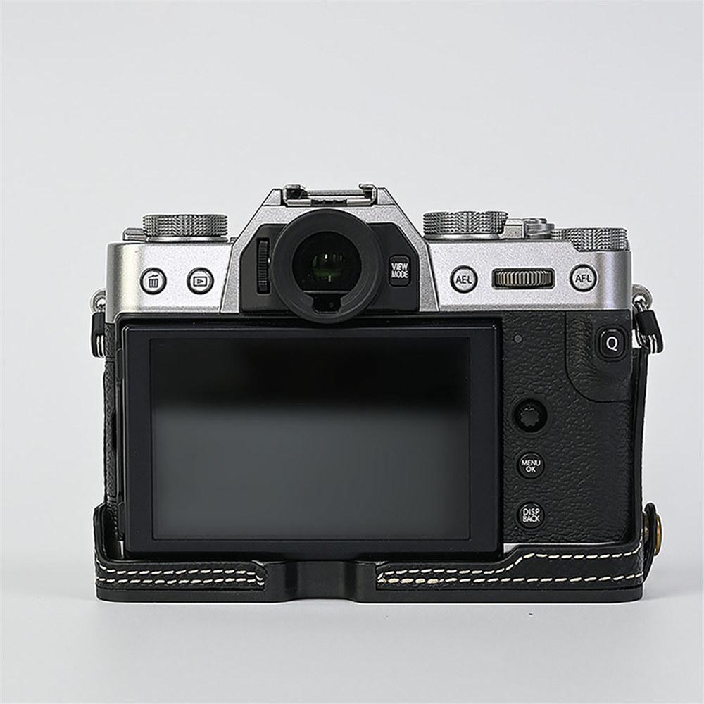 Pokrowiec na połowę korpusu aparatu ze skóry PU z nadrukiem palmy dla Fujifilm XT30 Fuji X-T30 XT30II XT20 XT10, dolna pokrywa z otwarciem na baterię