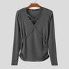 INCERUN Men Long Sleeve V Neck Bandage Fitted Casual Undershirts Tops T-shirts