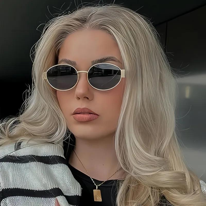 1pc Oval Metal Frame Decorative Eyeglasses PC Lens Wide Brim Suitable for Hiking Travel and Po Shooting