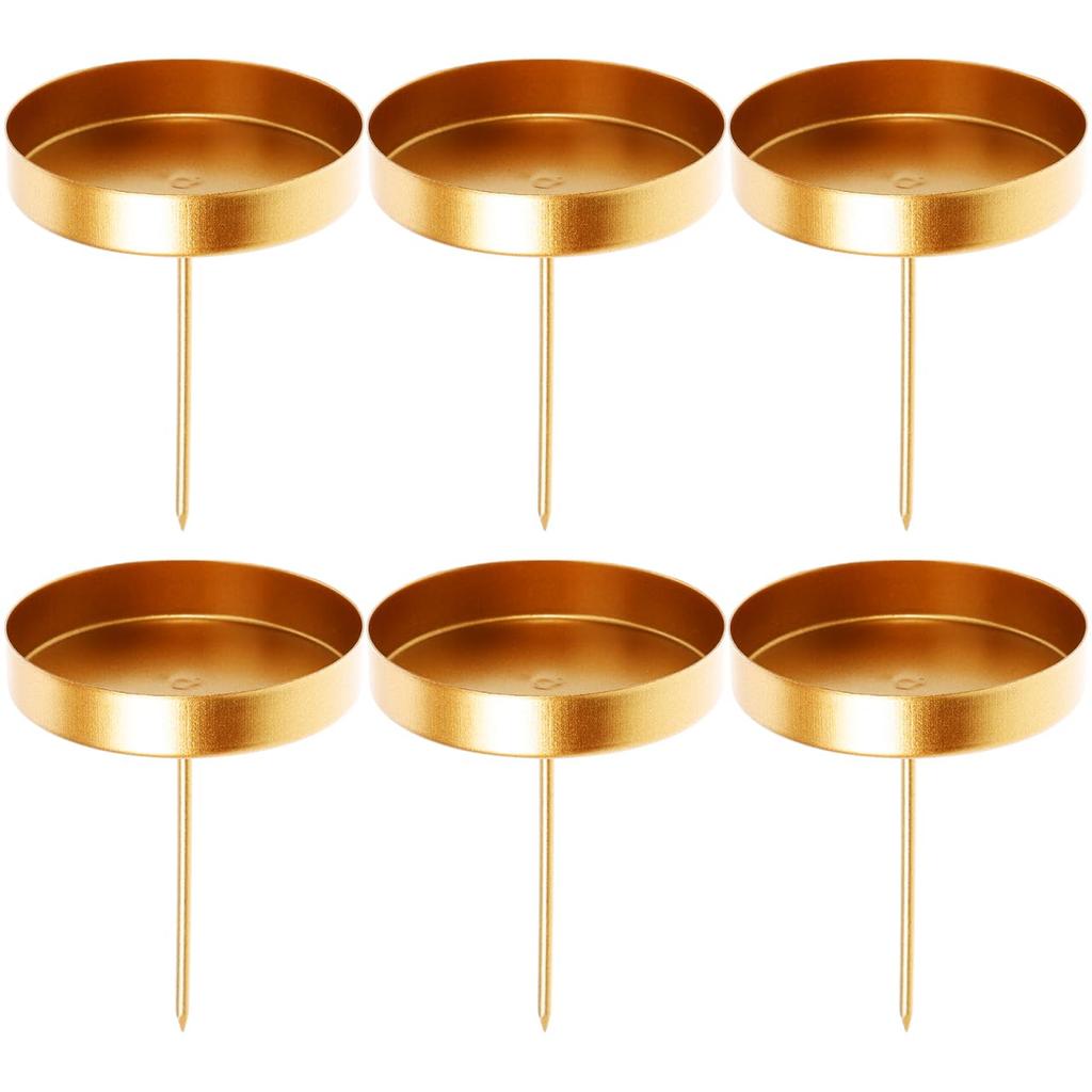 MUCKLILY 6-Piece Round Candle Spike Plates, Durable and Reusable Iron Candlesticks for Pillar Candles, Perfect for Weddings, Home, and Parties, Gold