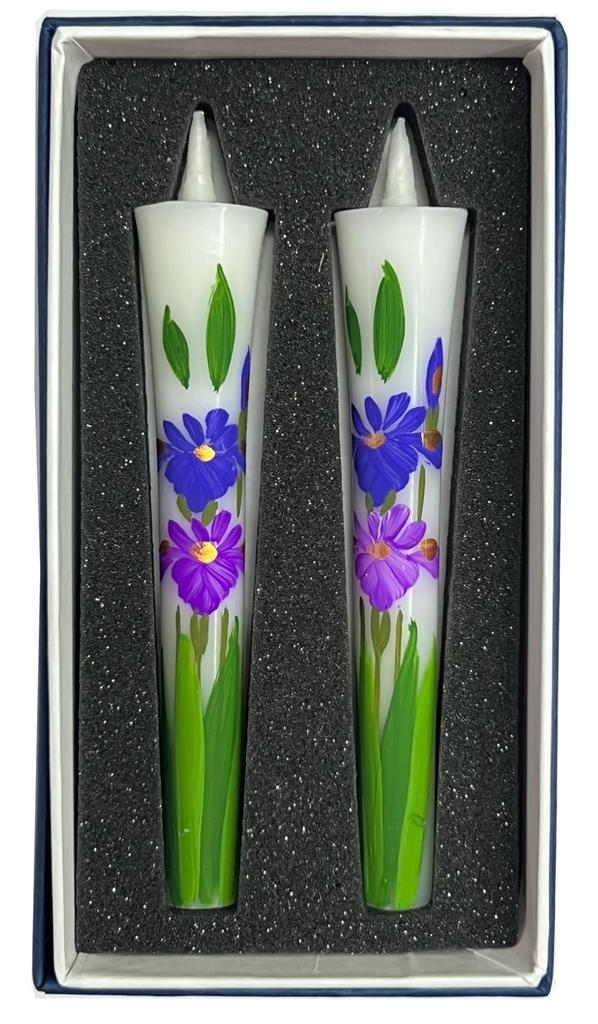 Ręcznie malowane świece z kwiatem irysa, Rozmiar 3, Styl japoński, Zestaw 2 sztuk, na ołtarze buddyjskie i do dekoracji domu, #3055