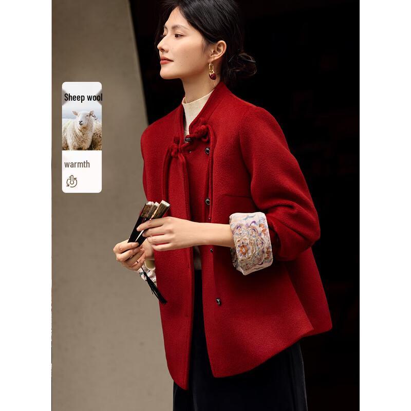 XWI Women's New Chinese Style Velvet Trim Wool Coat