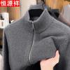 Hengyuanxiang Men's 100% Merino Wool Thick Zip Mock Neck Sweater