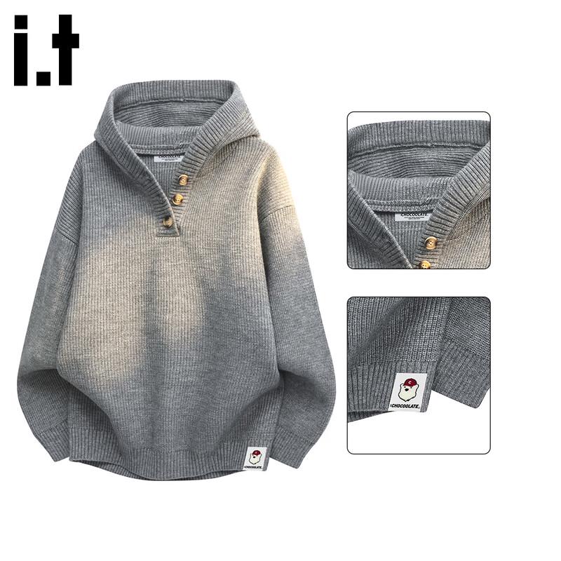 :CHOCOOLATEit Men's Loose Fit Hooded Knit Sweater