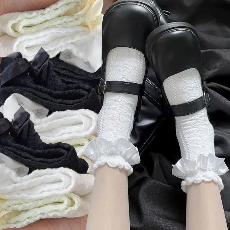 1/3Pairs New Black and White Lace Bow Socks Cute Japanese Lace Princess Fairy Inside Socks for Student JK Dress Accessories