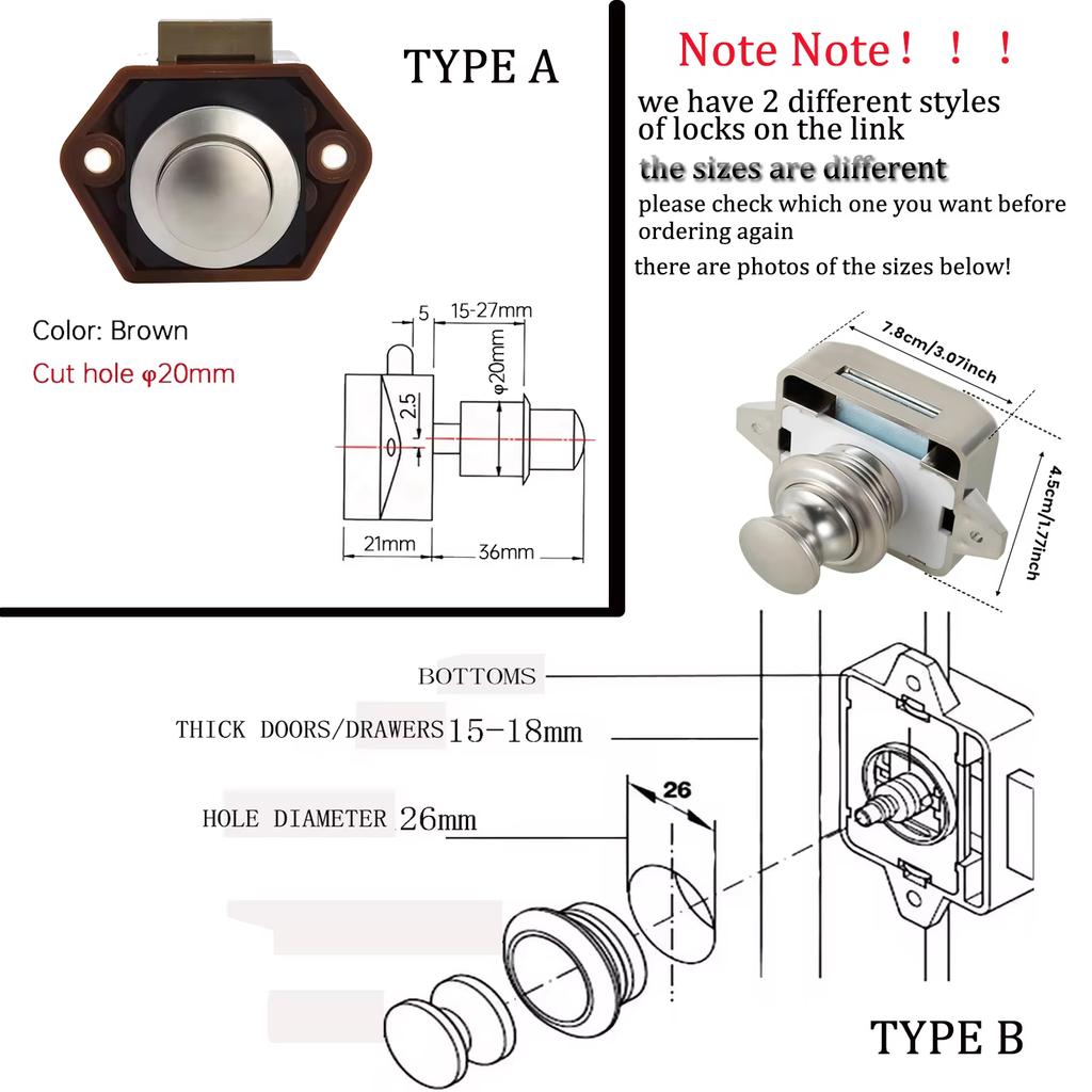 5/10pcs 26mm Push Locks Camper Car Push Button Latch Locks Cabinet Lock RV Caravan Drawer Lock Furniture Hardware Door Locks