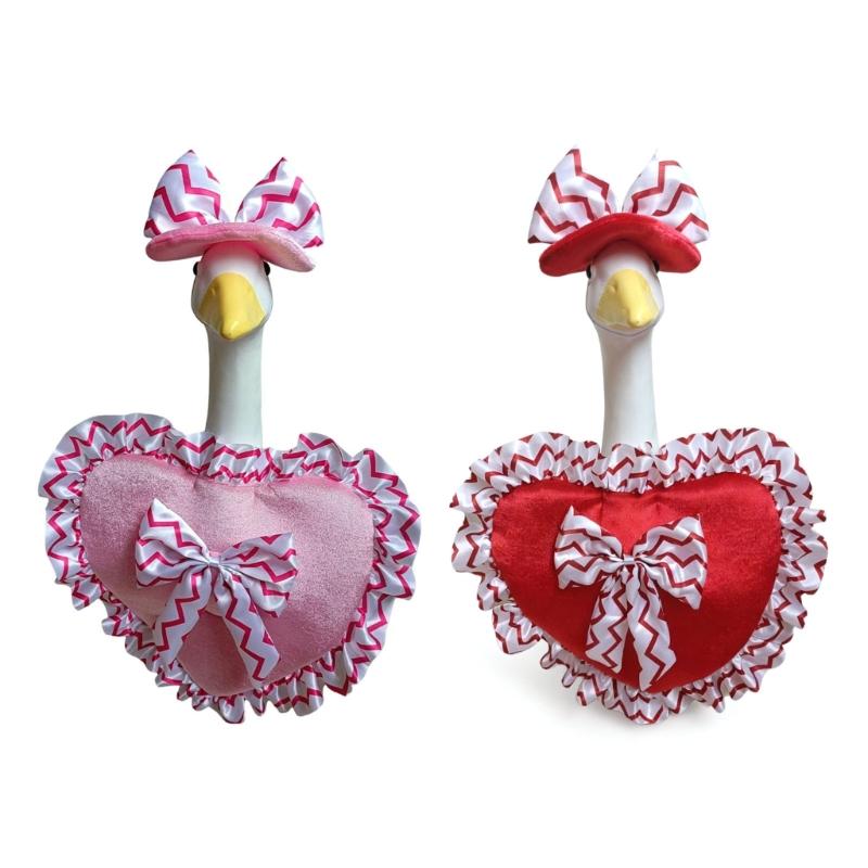 Udekoruj swój ganek tym strojem gęsi na Walentynki, ozdobionym delikatną różową koronką i wzorami w kształcie serca, tworząc romantyczną atmosferę na świąteczne dekoracje.