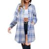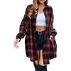 Damska Luźna Wygodna Codzienna Modna Bluzka Koszula z Długim Rękawem w Kratę o Średniej Długości