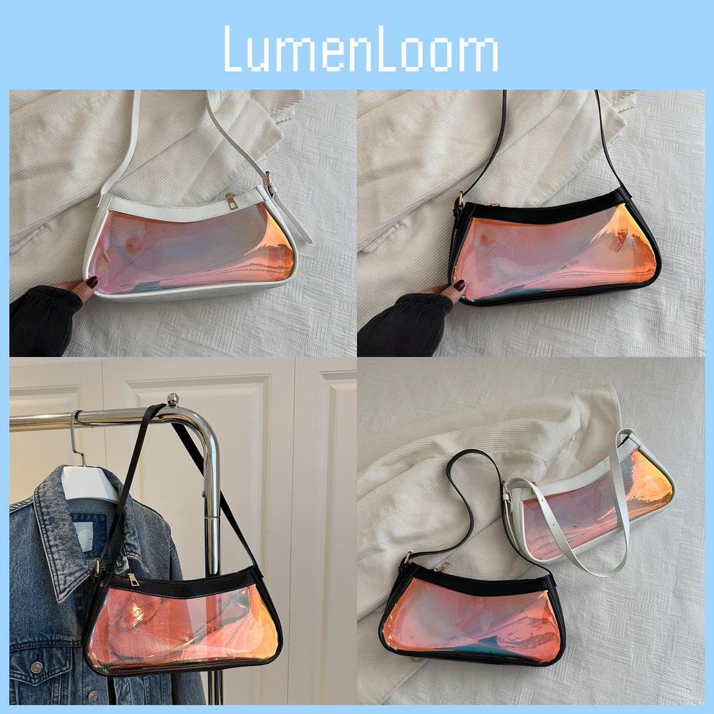 This stylish small shoulder bag features a transparent PVC construction with a laser element, enhancing its modern streetwear appeal. Measuring approximately 28.5cm in width and 13.5cm in height, it offers a compact yet functional design suitable for daily use. The bag employs a secure zipper closure and includes an interior polyester lining with an inner slip pocket for organization, providing reliable storage for essentials.
