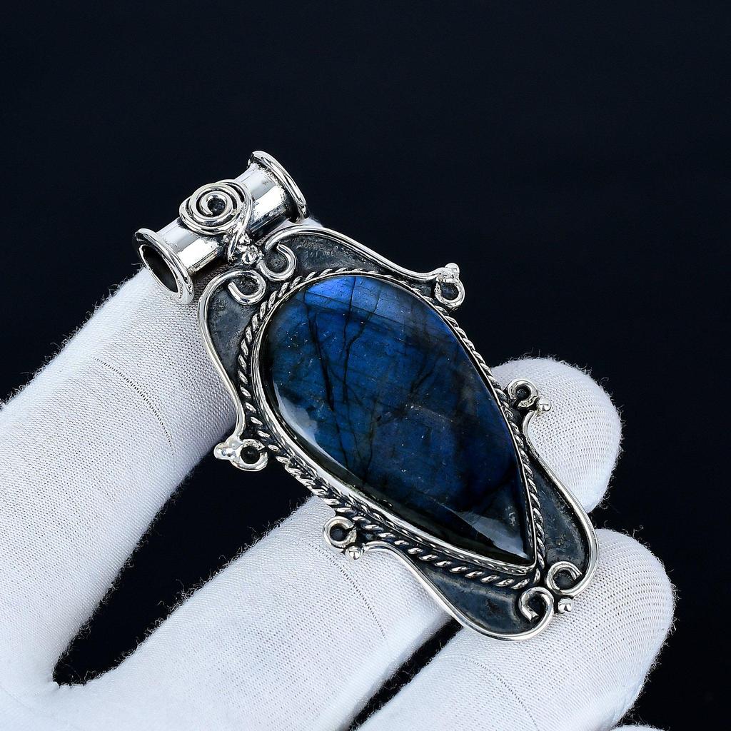 Wisiorek z kamienia szlachetnego labradorytu wykonany ręcznie ze srebra próby 925