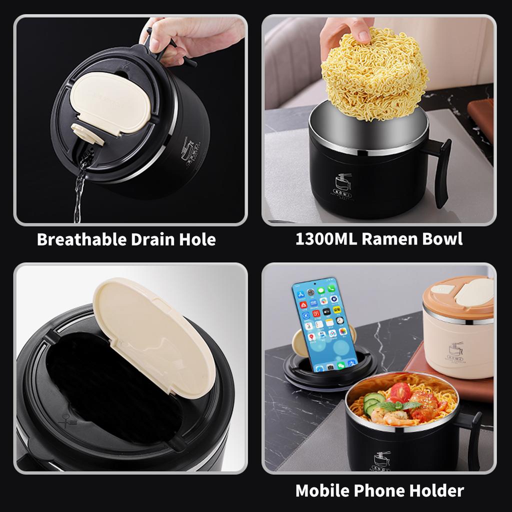 1300ml Miska do ramenu z pokrywką Stal nierdzewna Kuchenka do makaronu instant Miska na sałatkę owocową Ryż Zupa Duży lunchbox Akcesoria kuchenne