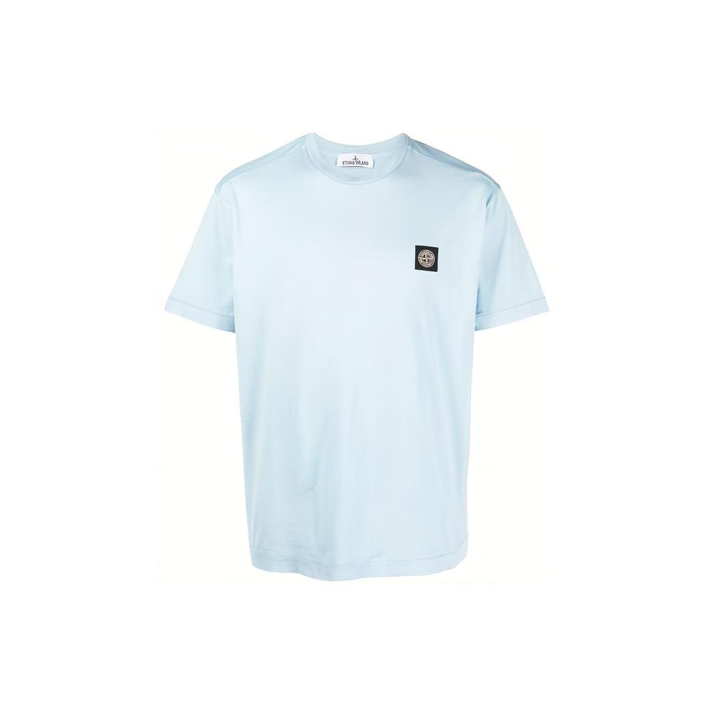Stone Island Logo Solid Color Crew Neck Pullover Straight Fit Short Sleeve T-Shirt Men Tops Light-Blue 791524113-V0041