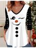 Modny, casualowy damski T-shirt z nadrukiem 3D świątecznym, z dekoltem w serek i długim rękawem - Ubranie na imprezę noworoczną, prezent świąteczny