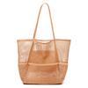 Mesh beach bag, women's shoulder tote bag, large capacity foldable mesh swim bag with pocket.-zmt