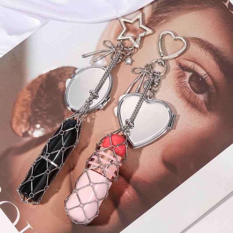 1pc Key Chain Charm Bag Accessories Net Pocket Interchangeable Stainless Steel Lip Balm Bag Keychain Lipstick Bag