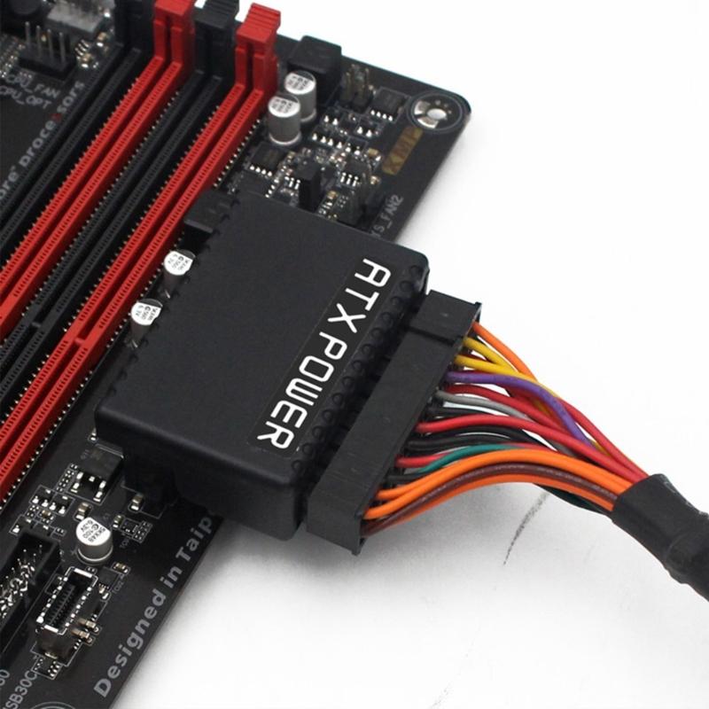 Adapter zasilania 24-pinowy żeński na 24-pinowy męski, kątowy 90 stopni, złącze mostkujące do zasilania komputera stacjonarnego