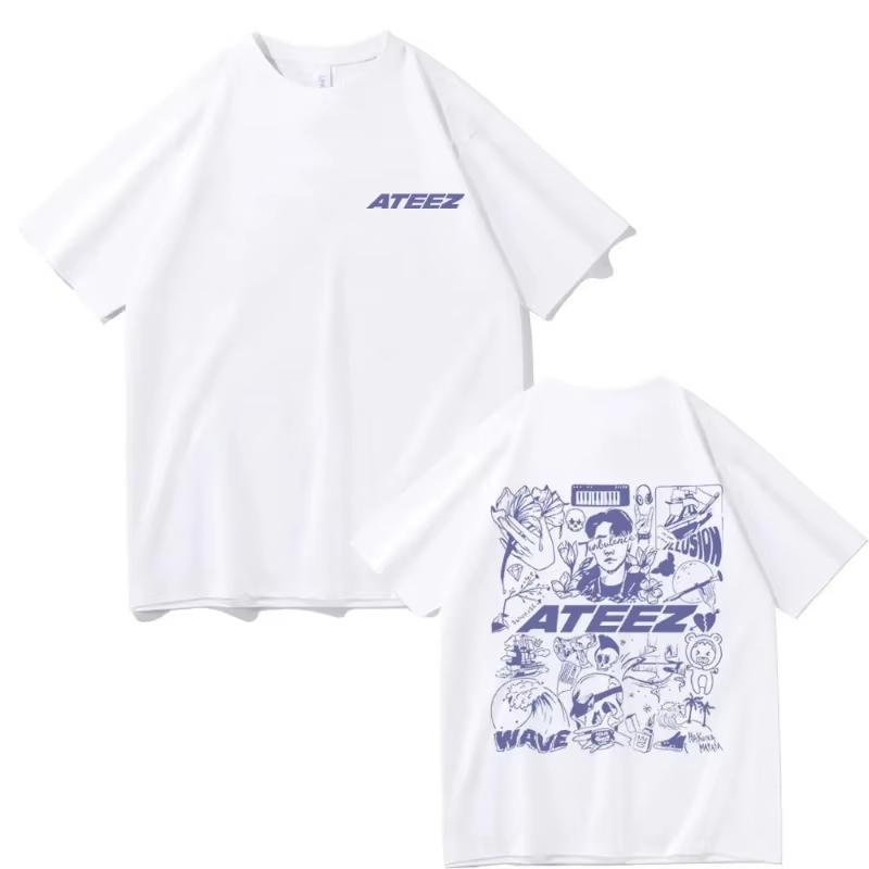 Jesienny Koreański Trend Mody Ateez Kpop Koszulka z Nadrukiem Graficznym Męska Y2k T-shirty Prezent dla Fanów Koncertowych Męska Damska Codzienna Koszulka