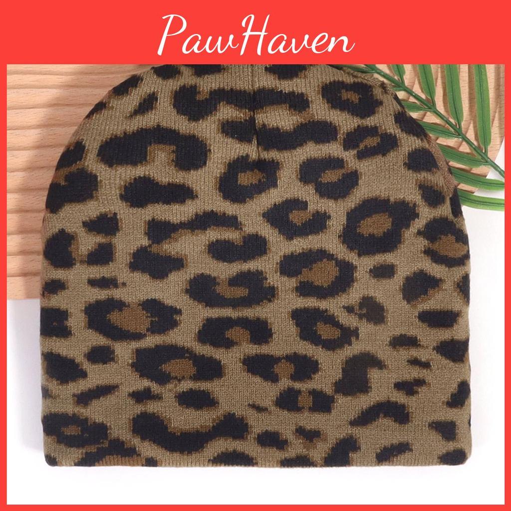 Leopard Print Knit Cap With Warmth For Winter Fashion Enthusiasts
