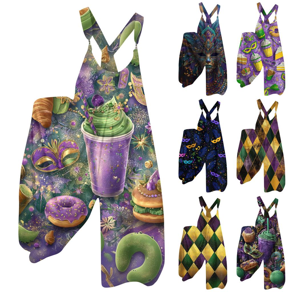 Damskie Ogrodniczki Wzór Vintage Kombinezon (Nieregulowane paski)