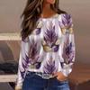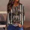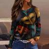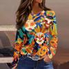 Damski Modny Casualowy Dekolt Okrągły Długi Rękaw Rozcięcie na Dole Nadruk Karnawałowy Koszulka Top