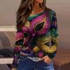 Damski Modny Casualowy Dekolt Okrągły Długi Rękaw Rozcięcie na Dole Nadruk Karnawałowy Koszulka Top