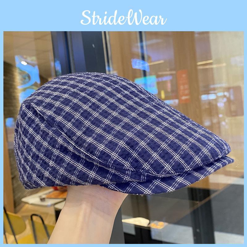Urban Street Style Grid Beret Hat For Women Summer Short Brim Cap With Retro Plaid Pattern